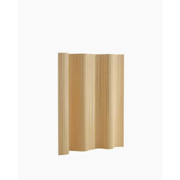 Screen 100 bringer Alvar Aaltos frie, organiske formspråk – et gjennomgående tema i hans arkitektur og design – inn i moderne interiører. Skjermen består av vertikalt stilte furuspiler som skaper struktur og orden, samtidig som de tilfører rommet naturlig varme og et mykt, organisk uttrykk.