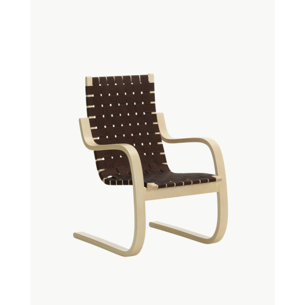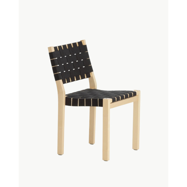 Stol 611, designet av Alvar Aalto i 1929, er en av hans tidligste møbeldesign og har vært i kontinuerlig produksjon siden. Stolen har en solid ramme i bjørk og sete og ryggstøtte som er sadelsydd med robust flettet linrem, som gir et lett og elegant uttrykk.