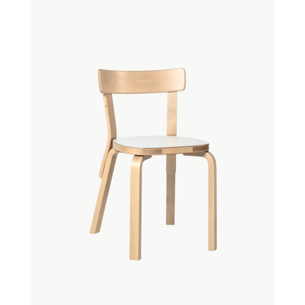 Stol 69 fra Artek, designet i 1935, er en av selskapets mest populære modeller. Med sin brede og støttende rygg gir stolen både komfort og stabilitet, samtidig som den beholder et elegant og strømlinjeformet uttrykk.