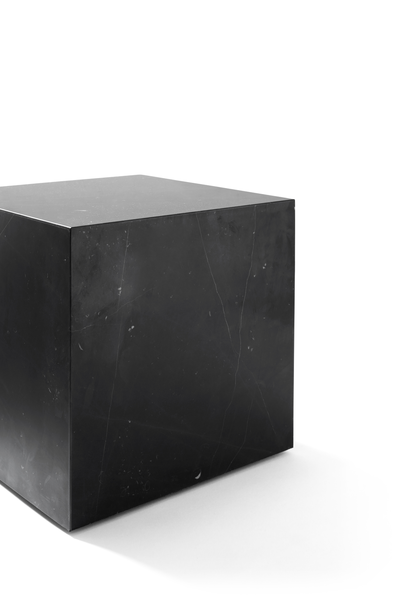 Plinth cubic fra Menu, designet av Norm Architects. Bordet i svart marmor har en ekstraordinær eksklusiv design. Designerne ville skape et bord med multifunksjon som viser frem den unike og vakre marmoren. Bordet er et riktig stilmøbel som passer utmerket som sidebord eller som nattbord og blir et vakkert blikkfang i rommet.