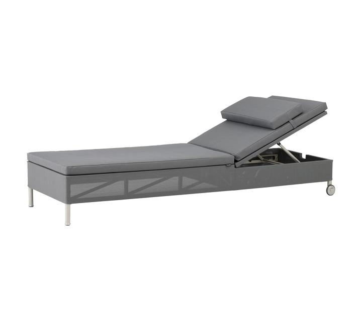 Den enkle og stilrene solsengen Rest utfyller Diamond produktene. Laget av vedlikeholdsfrie Cane-line Tex. Resten solseng har to små hjul, som gjør det svært enkelt å flytte rundt. Du er i stand til å justere ryggstøtten i 4 forskjellig posisjoner, slik at du både kan ligge flatt og sitte og lese en bok. Rest solseng er designet av den Cane-line design team.