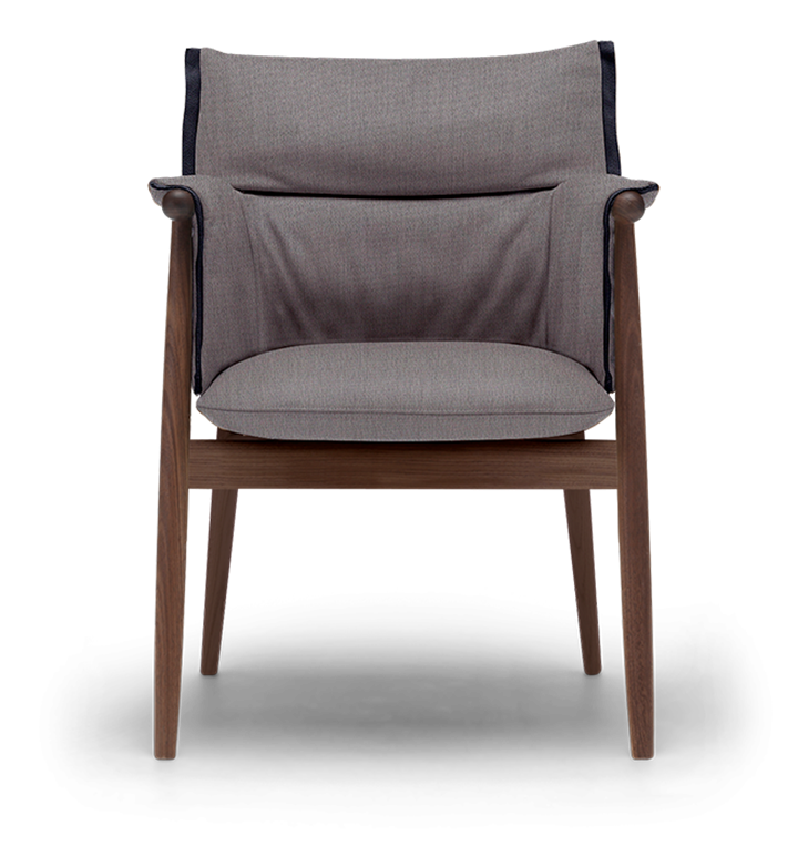 Embrace Chair er et tillegg i 2019 til Embrace Series av den østerrikske designtrioen EOOS. Stolen har visuelt lett uttrykk, ingen armlener og tar mindre plass og passer til hvilket som helst bord. Designet gir stor bevegelsesfrihet - en kvalitet som gjør det mulig for brukere å kommunisere og samhandle fritt. Møbeltrekket er brettet i to dimensjoner, og trekkens avslappede luft kontrasterer den perfekt formede trerammen. Det er et vitnesbyrd om samholdet mellom håndverket og arven til Carl Hansen & Søn og den innovative designtilnærmingen til EOOS.