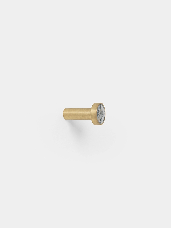 Bruk samme kroker eller eksperimenter for å blande de forskjellige jordmaterialene og oppnå et engasjerende uttrykk med flere små fokuspunkter. Denne kroken er formet i støpejern i vårt karakteristiske stiplede mønster med klare referanser til den moderne terrazzoen.