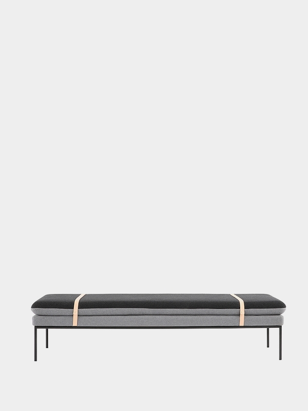Turn dagseng fra Ferm Living. Med et minimalistisk designspråk, strenge, rette linjer og myke runde former skaper denne vakre dagsengen en elegant, enkel og luftig følelse. De slanke metallbena er produsert i pulverlakkert stål. Dagsengens pute er vendbar, som gjør det enkelt å endre utseende etter følelse, ønske og humør. Legg merke til at trekket på puten, selv om det har glidelås, ikke bør tas av for å vaskes. Vask bør kun utføres av profesjonelle renseri.
