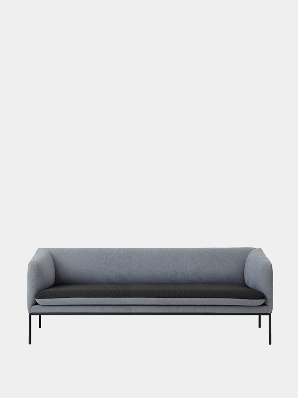 Turn sofa fra Ferm Living. Med et minimalistisk designspråk, strenge, rette linjer og myke runde former skaper denne vakre sofaen en elegant, enkel og luftig følelse. De slanke metallbena er produsert i pulverlakkert stål. Sofaens pute er vendbar, som gjør det enkelt å endre utseende etter følelse, ønske og humør. Legg merke til at trekket på puten, selv om det har glidelås, ikke bør tas av for å vaskes. Vask bør kun utføres av profesjonelle renseri.