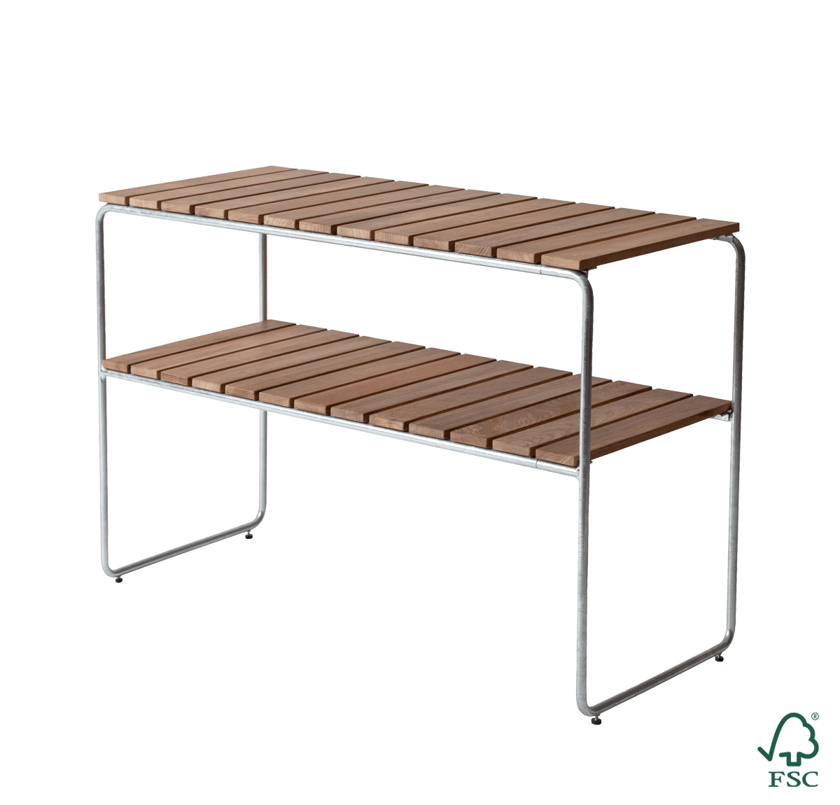 Et stilig bord som passer inn i de fleste miljøer. Inngår i Klassiker-serien slik at du enkelt kan kombinere med andre møbler fra serien. De to planene gjør bordet ekstra nyttig. Tilgjengelig i oljet eller hvitlakkert eik eller teak. Bordet er laget av massive tredeler og solid stål og er fullstendig resirkulerbar. Tredetaljene har miljøsertifiseringer fra FSC® og PEFC™ – to ledende organisasjoner som deler deres syn på hva ansvarlig skogbruk betyr.