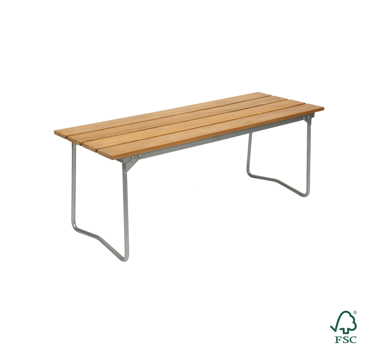 Artur Lindqvists klassiker fra 1954 er nå tilbake i produksjon. En lett og fleksibel benk som du enkelt kan flytte og sette sammen ved siden av hverandre på store selskaper. Benken er laget av massive tredeler og solid stål og er fullstendig resirkulerbar. Tredetaljene har miljøsertifiseringer fra FSC® og PEFC™ – to ledende organisasjoner som deler deres syn på hva ansvarlig skogbruk betyr.