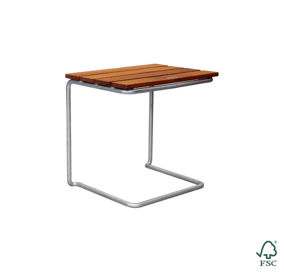 Et mindre bord i Classic-serien. Bordet er perfekt for den lille balkongen eller som tillegg til det større bordet B31 170. Bordet er laget av massive tredeler og solid stål og er fullstendig resirkulerbar. Tredetaljene har miljøsertifiseringer fra FSC® og PEFC™ – to ledende organisasjoner som deler deres syn på hva ansvarlig skogbruk betyr.