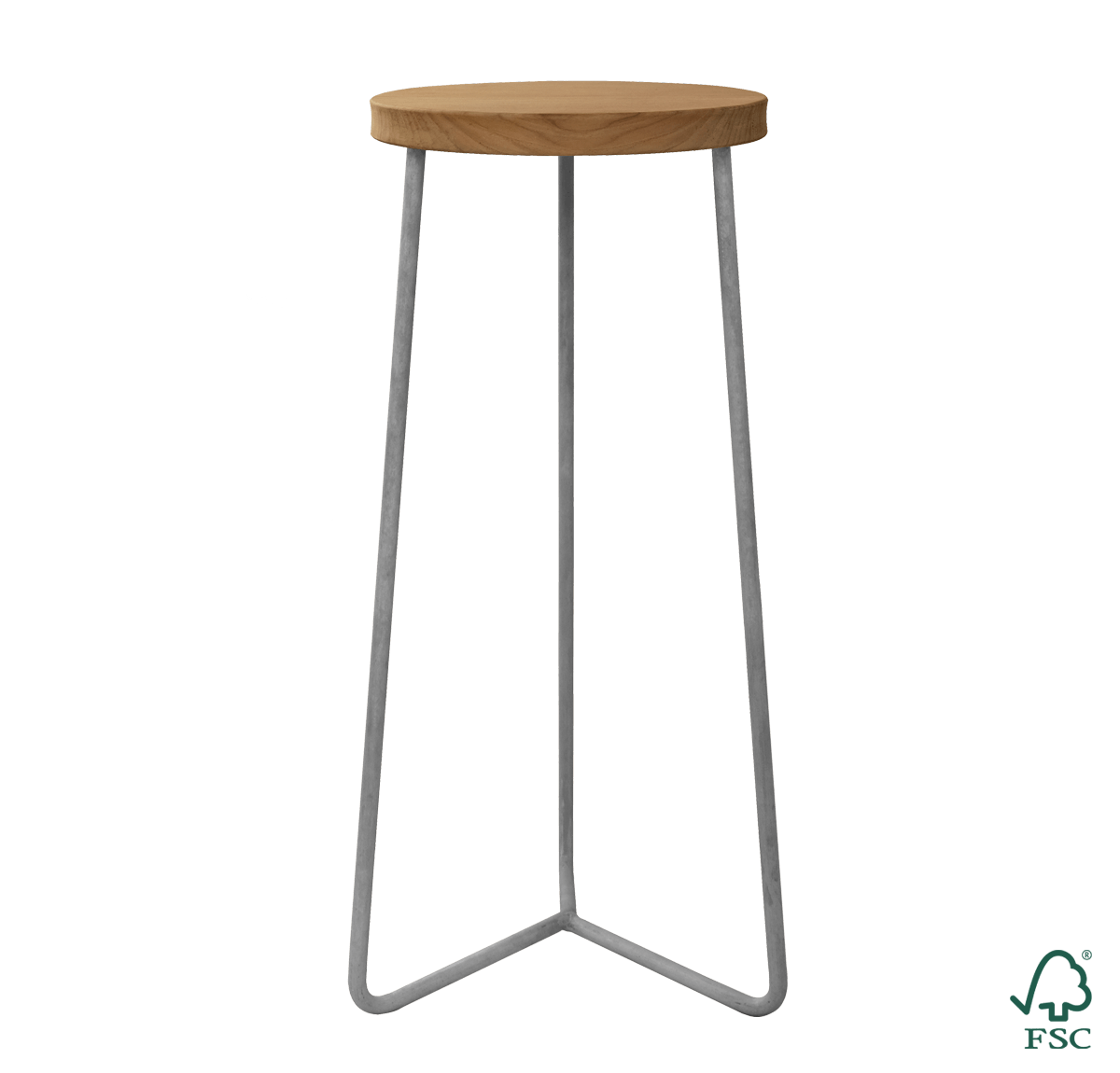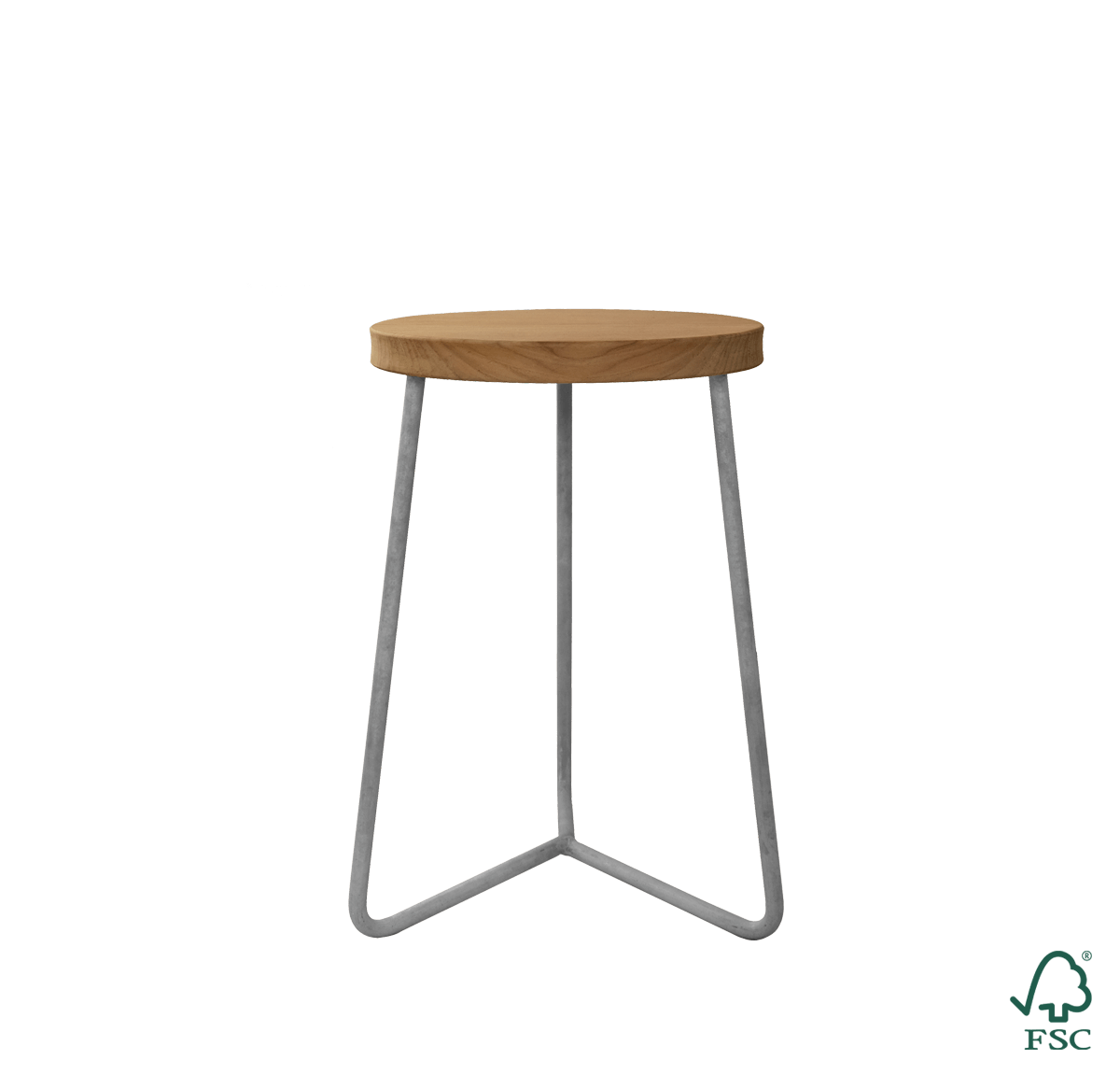 Vår klassiske krakk ble opprinnelig laget for verksteder og er bygget for å tåle hard slitasje. De tre bena i kraftig stål gjør krakken lett å plassere, stabil og tilnærmet uforgjengelig. Med sete i dyrket teak og ben i varmgalvanisert stål er krakken meget slitesterk, og passer like godt ute som inne. Bordet er laget av massive tredeler og solid stål og er fullstendig resirkulerbar. Tredetaljene har miljøsertifiseringer fra FSC® og PEFC™ – to ledende organisasjoner som deler deres syn på hva ansvarlig skogbruk betyr.