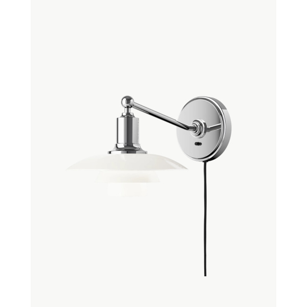 PH 3/2 Vegg er en del av Poul Henningsens ikoniske PH 3-skjermssystem, utviklet i samarbeid med Louis Poulsen på midten av 1920-tallet. Lampen bygger på prinsippet om flere skjermer som sammen gir et helt blendefritt og behagelig lys, samtidig som lyset utnyttes effektivt.