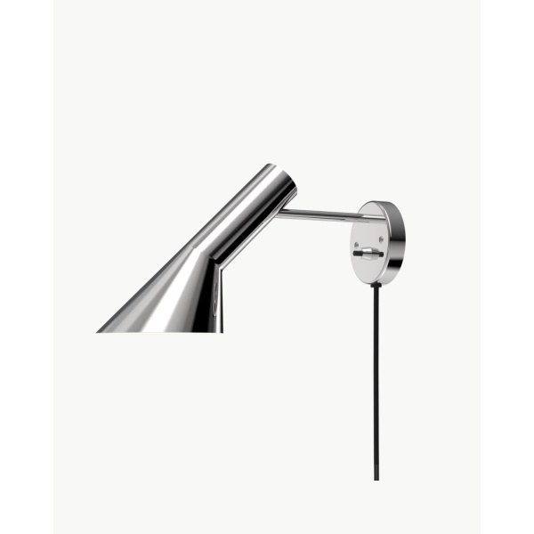 Designet av Arne Jacobsen i 1957 for SAS Royal Hotel i København, er AJ Vegglampe en del av hans berømte AJ-serie. Lampen gir behagelig nedadrettet lys gjennom sin hvitmalte indre skjerm, som enkelt kan vippes for å justere lysfordelingen.