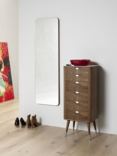 Speil - gjenspeiler minimalistisk enkelhet, rene linjer og ro. Full av karakter med sammenføyde hjørner for å være vitne til en dyp hengivenhet for skap. Glasset tjener bare til å understreke skjønnheten i rammen.