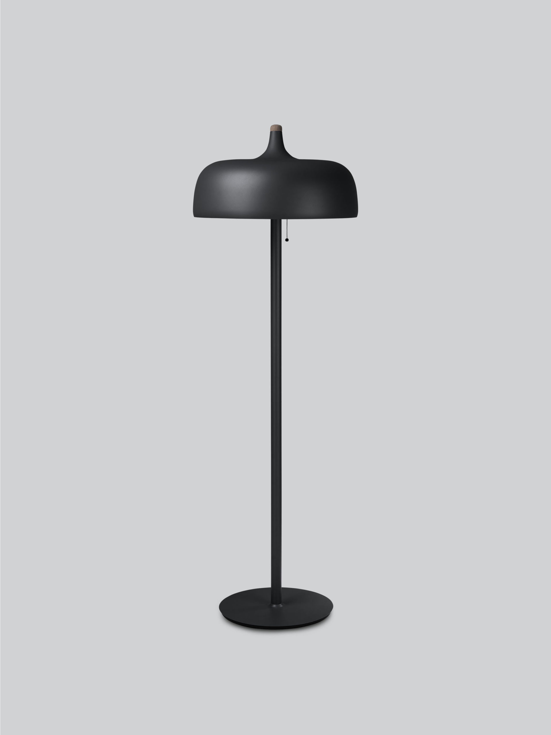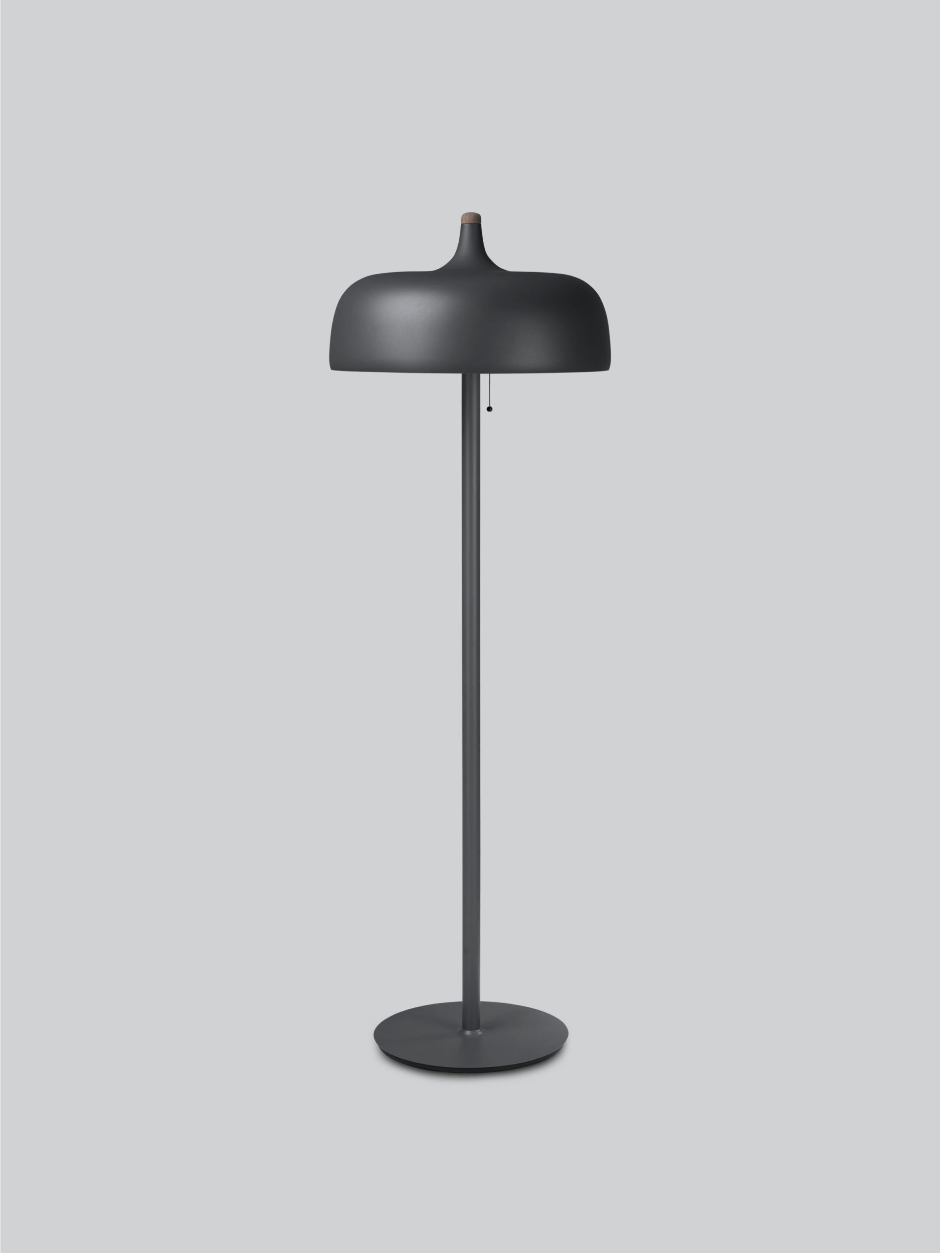 Tilgjengelig i hvit, mørkegrå og svart finish, har Acorn gulvlampen varme bøk- og valnøttdetaljer på aluminiumsskjermen sammen med en pen trekkbryter. Strømkabelen er også skjult i en ren silkeledning.