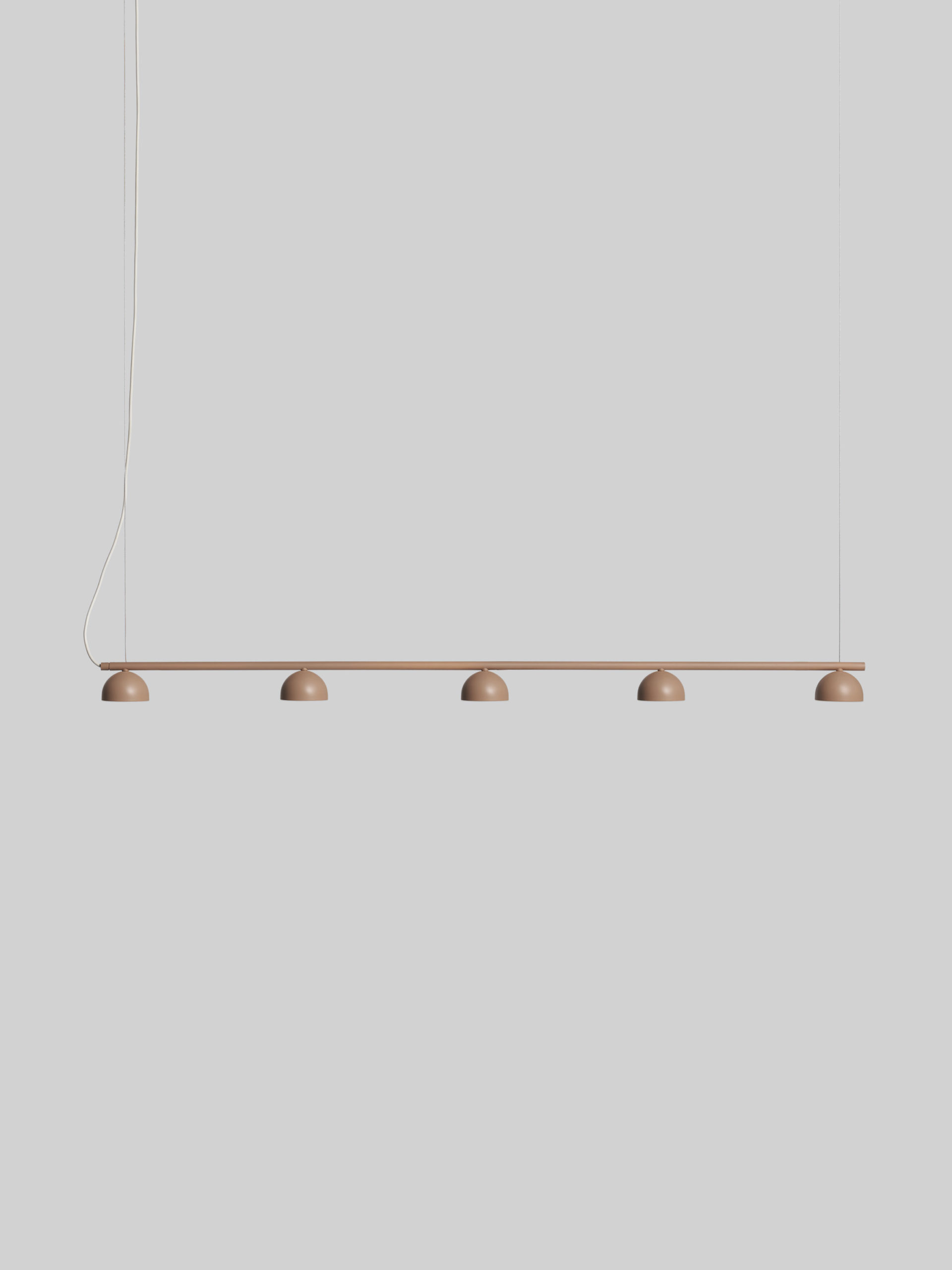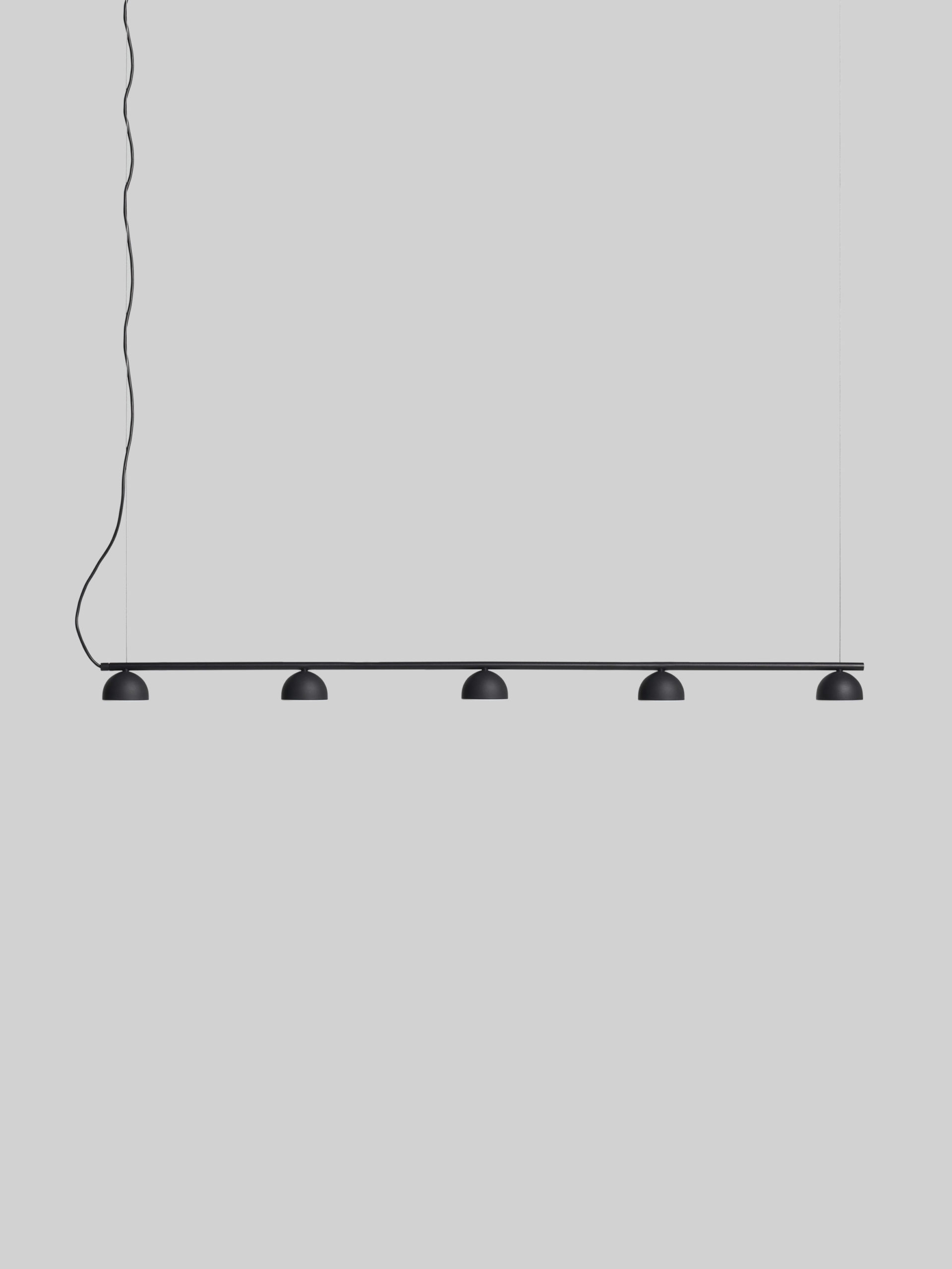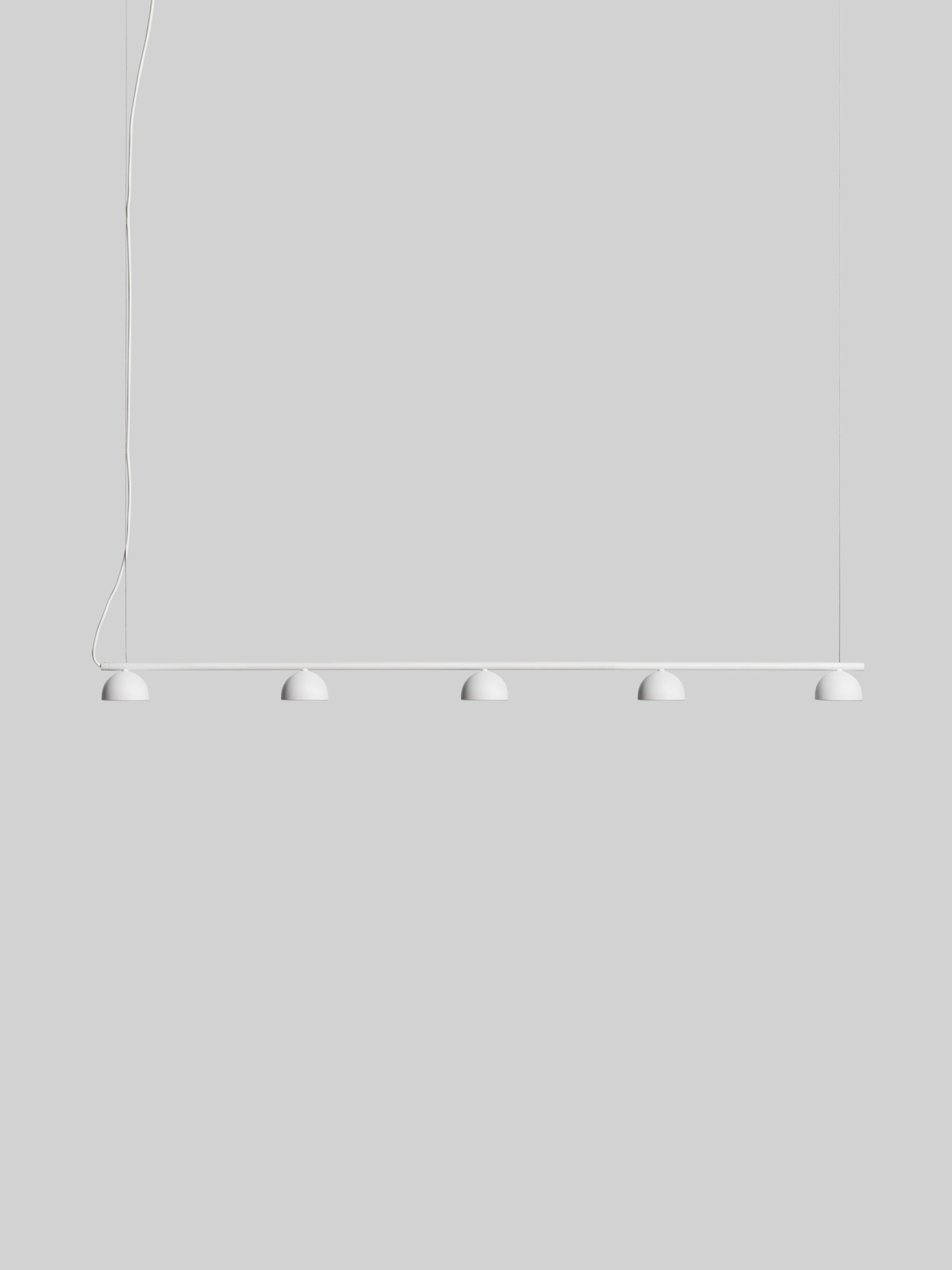 Blush Rail-pendelen er laget av pulverlakkert stålrør og tilgjengelig i utvalgte farger, og er integrert med et sett med enten tre eller fem små opale akryldiffusorer som alle er koblet sammen for enkel installasjon.