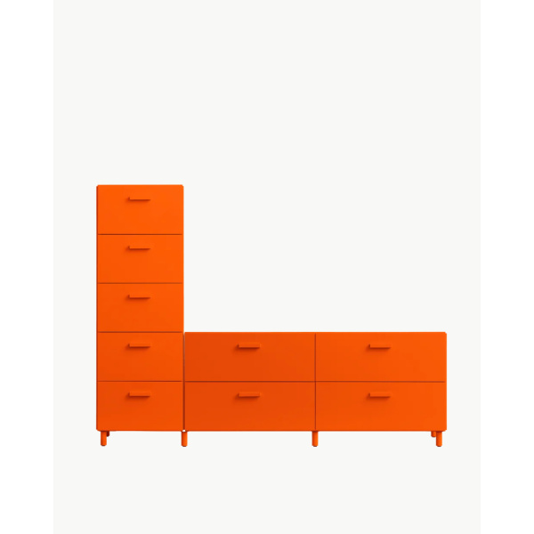 Skap en dynamisk og stilfull oppbevaringsløsning med Relief-kombinasjonen som består av én lav og én høy kommode med ben. De to skuffeenhetene fra Relief er elegant koblet sammen til én samlet enhet, som gir et moderne og harmonisk uttrykk i hjemmet ditt.