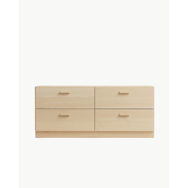 Wide Chest of Drawers fra Relief kommer med fire romslige skuffer, perfekt for å organisere klær, tilbehør eller andre eiendeler. Alle enheter fra Relief kan enkelt kobles sammen, noe som gir uendelige muligheter for å skape din egen unike oppbevaringsløsning.