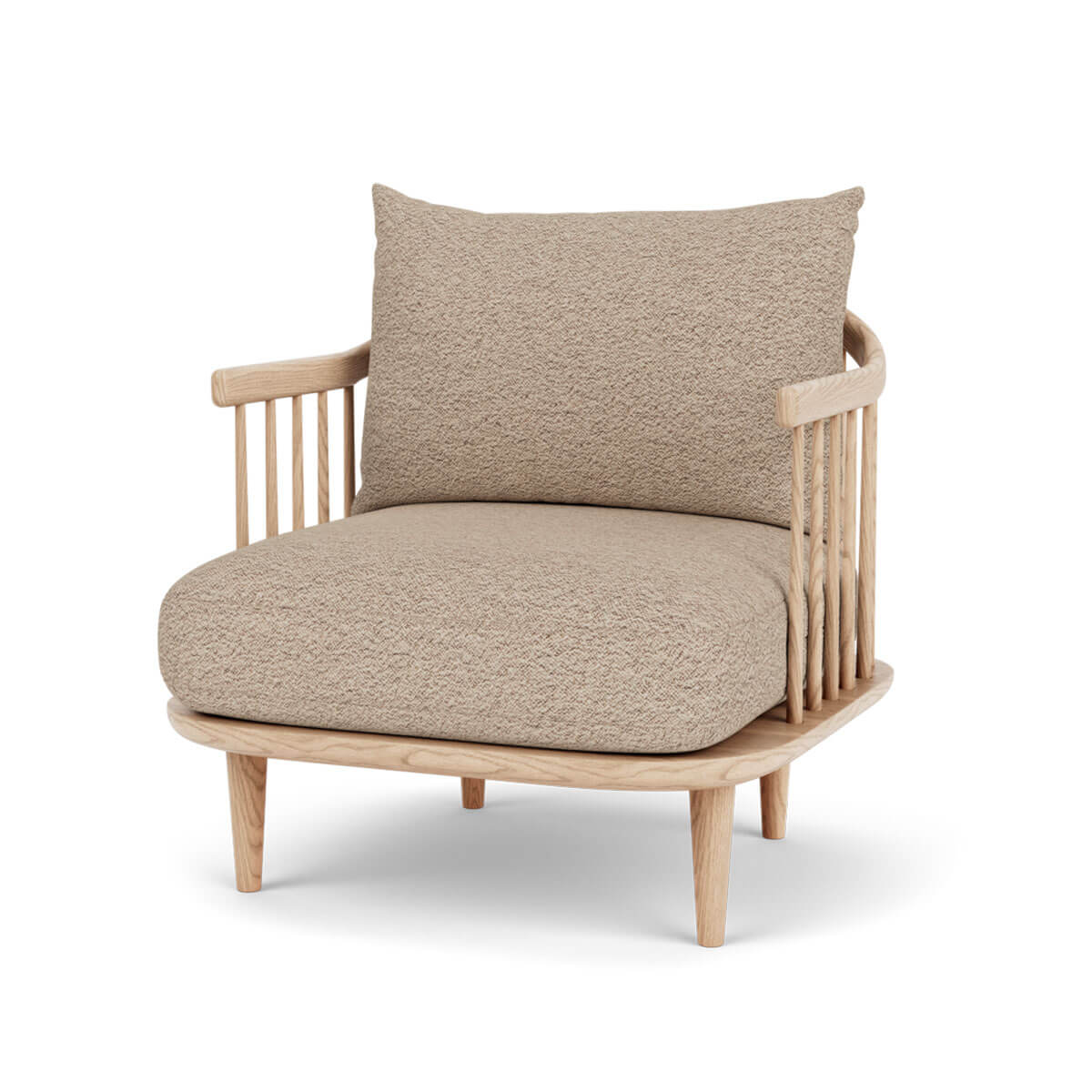 Space Copenhagens Fly-serie signaliserer en skulpturell tilnærming til design uten å ofre komforten. Med referanse til en klassisk nordisk estetikk, detaljer og teknikker, sett i rygglenet på spalter, organiske former og solid håndverk. Fly er en serie som lar brukerne sitte, ligge, hvile og slappe av. I motsetning til mange av sofaene og lenestolene i skandinavisk designhistorie, pålegger Fly ikke sitteren noe særlig holdning. Selve setet er optimalisert for komfort, med løse puter for ryggen som kan ordnes etter brukerens egne behov. Denne lenestolen kommer i tre forskjellige varianter.