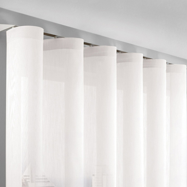 Få den bølgebevegelsen du ønsker deg med spesialtilpassede skinner og gliderbånd fra Silent Gliss. På tekstilet sys et transparent Wave-bånd med kroker montert med bestemte mellomrom. Kontakt oss for råd og anvisninger om søm og tekstilberegning. Gliderbånd fra Silent Gliss er førmontert og er det eneste som passer i skinnen.