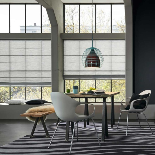 Plisoler bygger svært lite når de er trukket helt opp og gir et mykt og behagelig uttrykk når de henger ned i vinduet.