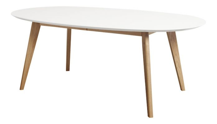 Andersen DK10 Ovalt Uttrekksbord 190 x 110 cm uttrekk til 3 plater Hvit laminat Hvit kant Massiv Eik