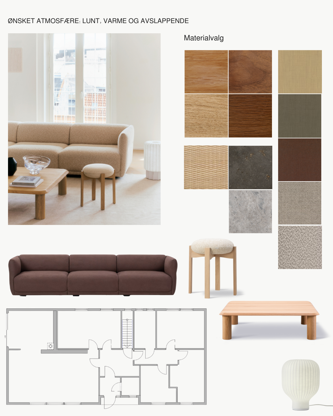 Uansett om du har en klar visjon eller bare en vag idé, kommer vi gjerne hjem til deg for å bli kjent med både deg og boligen din. Sammen kartlegger vi behov, drømmer og muligheter – og lager en plan for alt fra farger og møblering til belysning og oppbevaring. Kanskje ser du hjemmet ditt med nye øyne, og kanskje finner vi løsninger du ikke hadde tenkt på. Vi gleder oss til å være en del av din prosess!