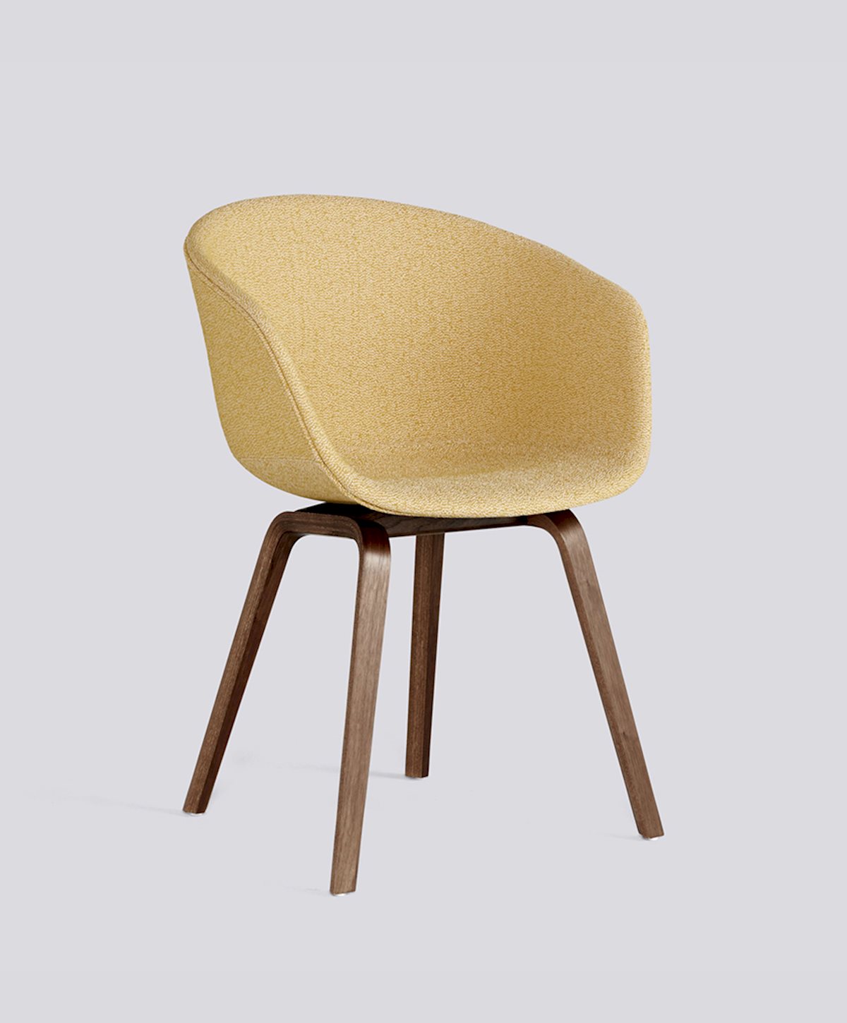 About A Chair AAC 23-design utstråler den funksjonelle enkelheten som er karakteristisk for hele denne serien. Det solide skallet består av en buet rygg med armlener i polypropylen, som gir utmerket komfort og en myk, enhetlig silhuett, mens den firbente trebunnen gir et tidløst, klassisk uttrykk som sikrer større stabilitet og lengre levetid. Det omfattende utvalg av farger, polstringsmuligheter og trevalg for ramme og ben gir muligheten til å skape nesten uendelige designkombinasjoner.