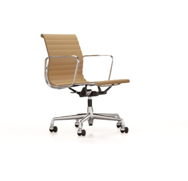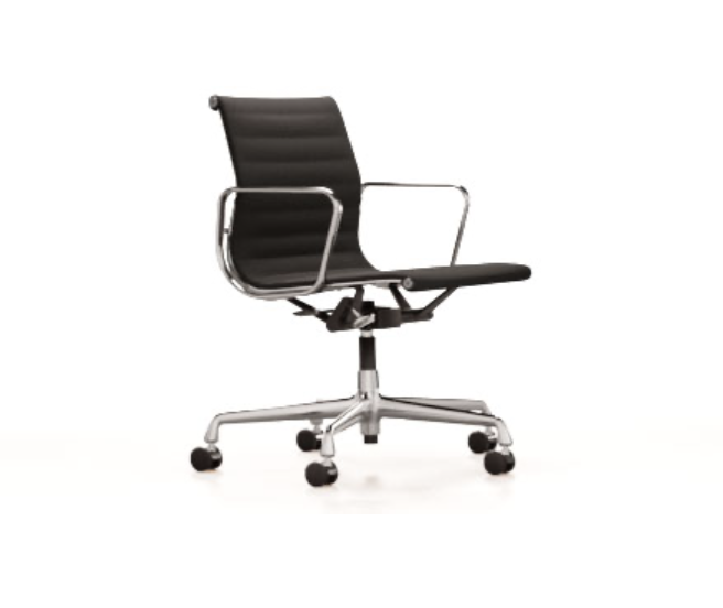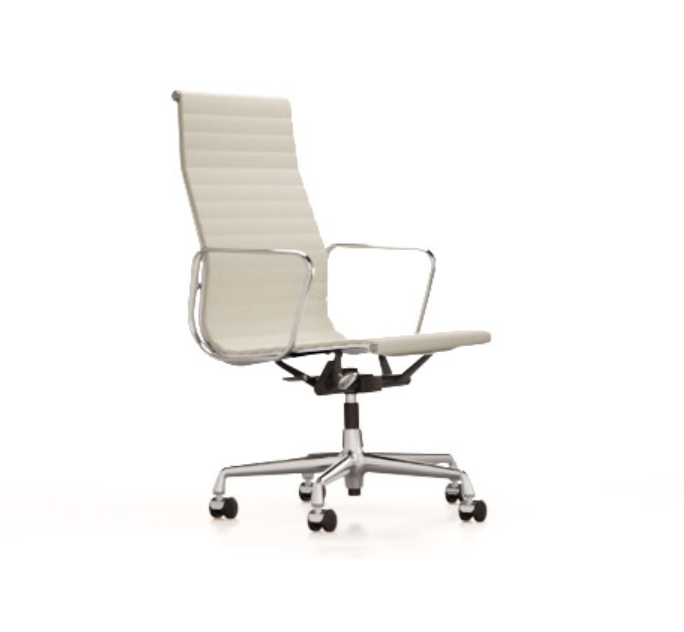 Modellene EA 117, EA 118 og EA 119 er arbeidsstolene i Aluminium Group av Charles og Ray Eames. Vippemekanismen i setet kan justeres til brukerens vekt, noe som gir optimal komfort. Trekk er tilgjengelig i et bredt utvalg av farger, noe som gjør det enkelt å finne den perfekte stolen for hvert hjemmekontor. Aluminiumstolen EA 119 skiller seg ut fra EA 117 og EA 118 ved sitt høyere ryggstøtte. EA 118 har et noe smalere sete, og sittestillingen til denne modellen er mer spesielt egnet for bordorienterte aktiviteter.