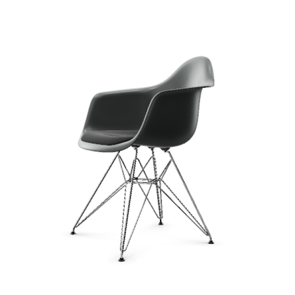 Vitra – Eames DAR RE stol med armleener Deep Black Nero pute eiffel understell