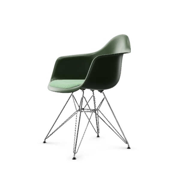 Vitra – Eames DAR RE stol med armleener Forest Green/ Ivory pute eiffel understell