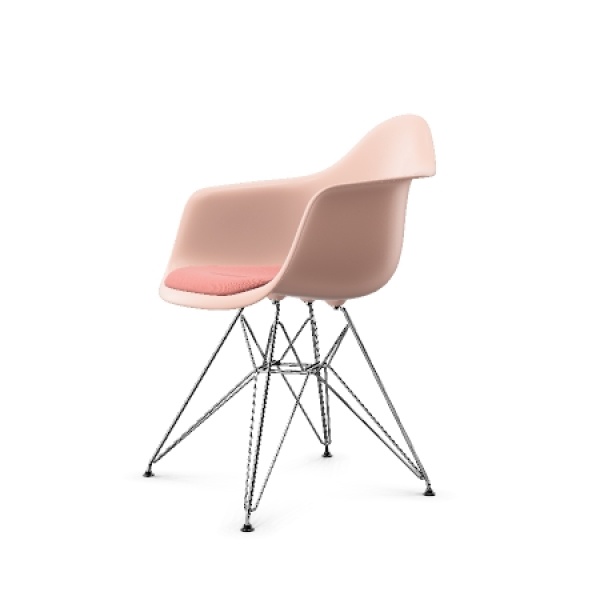 Vitra – Eames DAR RE stol med armleener Pale Rose Poppy red/ Ivory pute eiffel understell