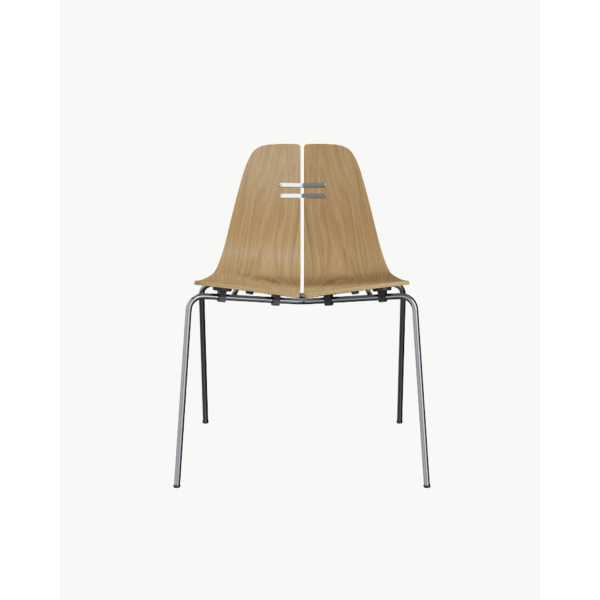 Den karakteristiske silhuetten – et sømløst skall som består av sete og rygg i ett stykke – ble skapt ved hjelp av en revolusjonerende teknikk med ni lag finér og to lag bomull, presset sammen under damp. Resultatet er en stol med fleksibilitet, styrke og en usedvanlig slank profil som fremdeles føles moderne over 60 år etter lanseringen.