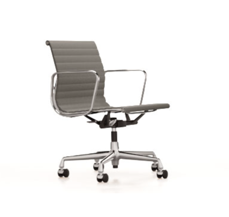 Modellene EA 117, EA 118 og EA 119 er arbeidsstolene i Aluminium Group av Charles og Ray Eames. Vippemekanismen i setet kan justeres til brukerens vekt, noe som gir optimal komfort. Trekk er tilgjengelig i et bredt utvalg av farger, noe som gjør det enkelt å finne den perfekte stolen for hvert hjemmekontor. Aluminiumstolen EA 119 skiller seg ut fra EA 117 og EA 118 ved sitt høyere ryggstøtte. EA 118 har et noe smalere sete, og sittestillingen til denne modellen er mer spesielt egnet for bordorienterte aktiviteter.