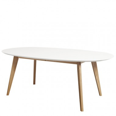 Andersen DK10 Ovalt Uttrekksbord 190 x 110 cm uttrekk til 3 plater Hvit laminat Hvit kant Massiv Eik