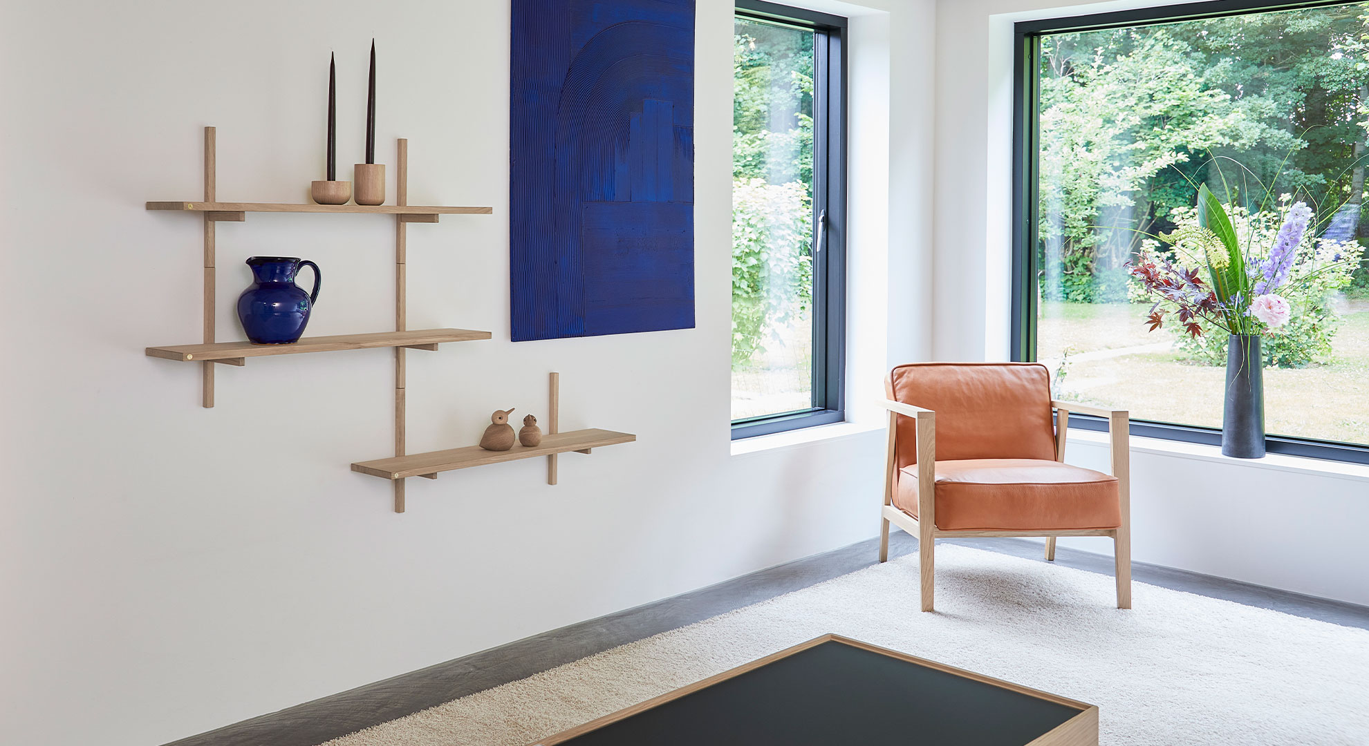 Andersen LC1 Loungestol Cognac Lær Eik Hvitpigmentert Matt Lakk