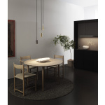 Minimal pendel som sender ut lys nedover og lyser opp overflatene med sin blendefrie glød. Tilgjengelig i en rekke overflater utviklet av håndverkere på ANOUR-verkstedet.