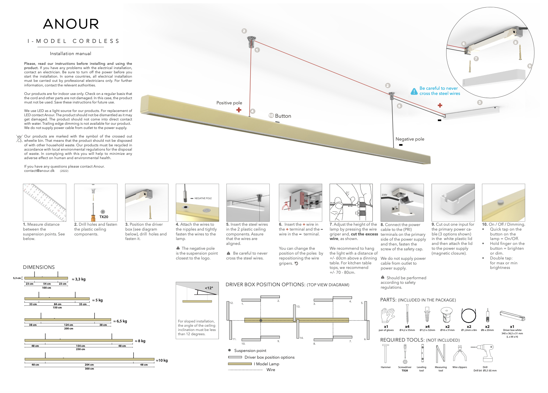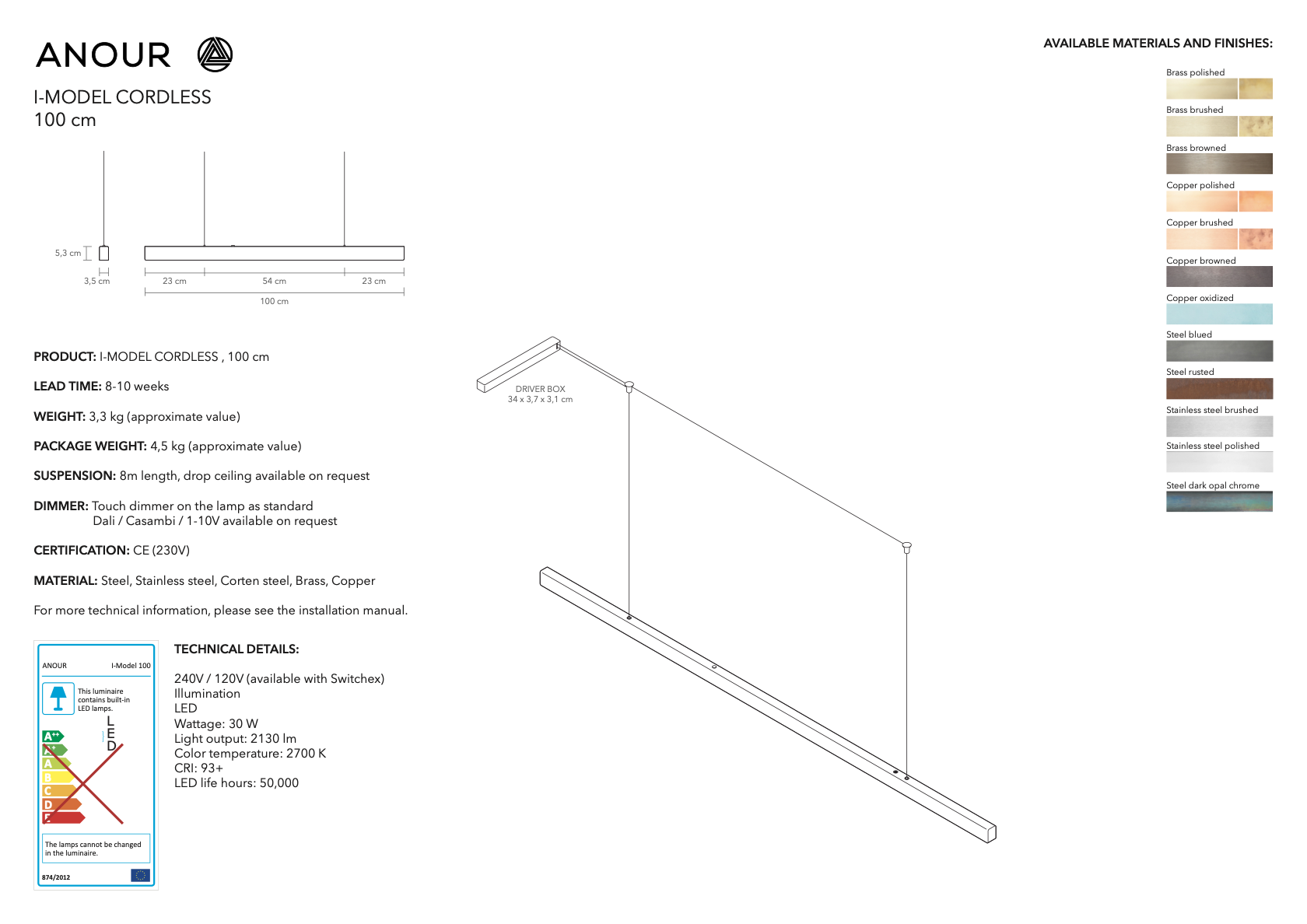 Anour I-Model Cordless Brushed Steel 200cm