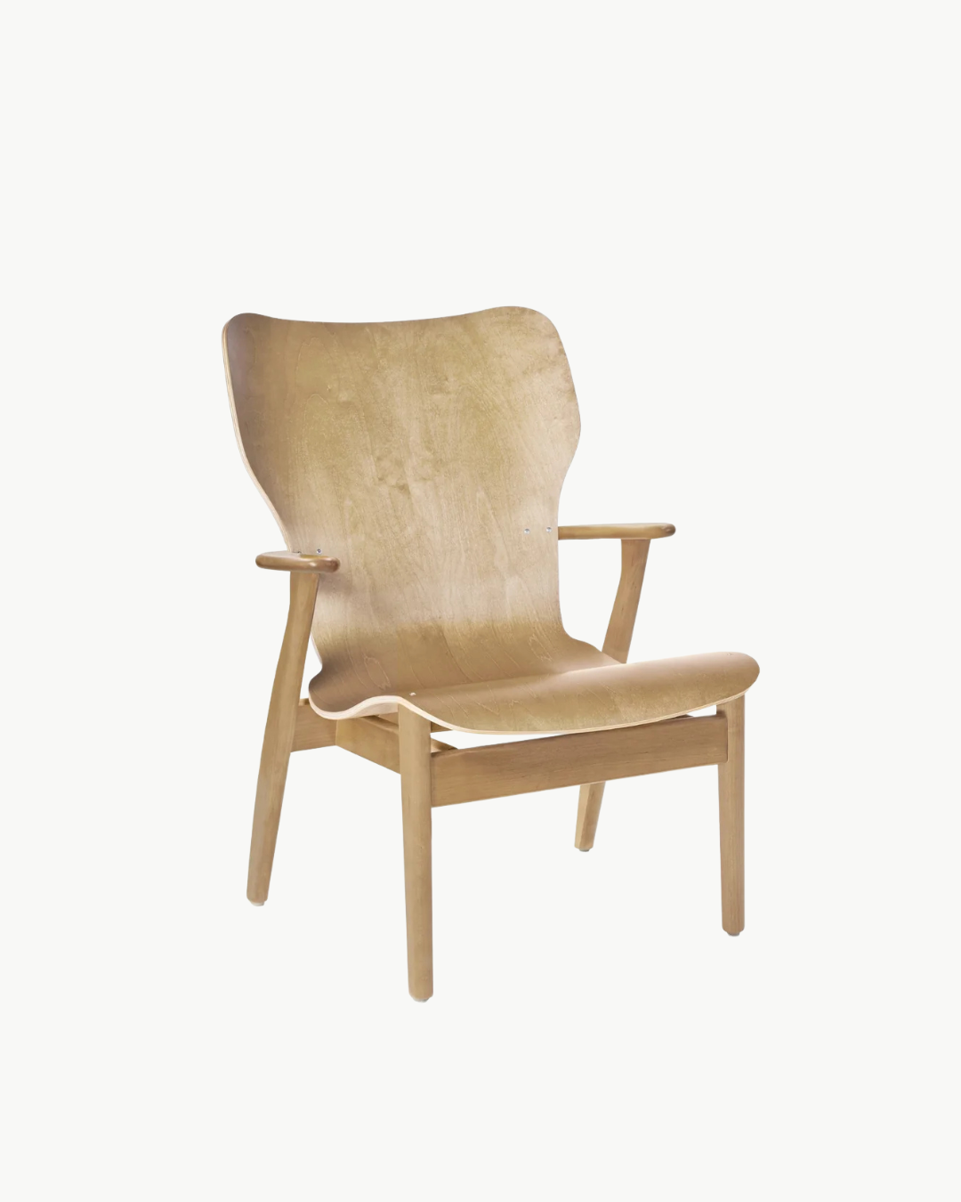 Med sine karakteristiske Domus-armlener og sete og rygg formet i ett sammenhengende finérelement, er Domus Lounge Chair usedvanlig komfortabel.