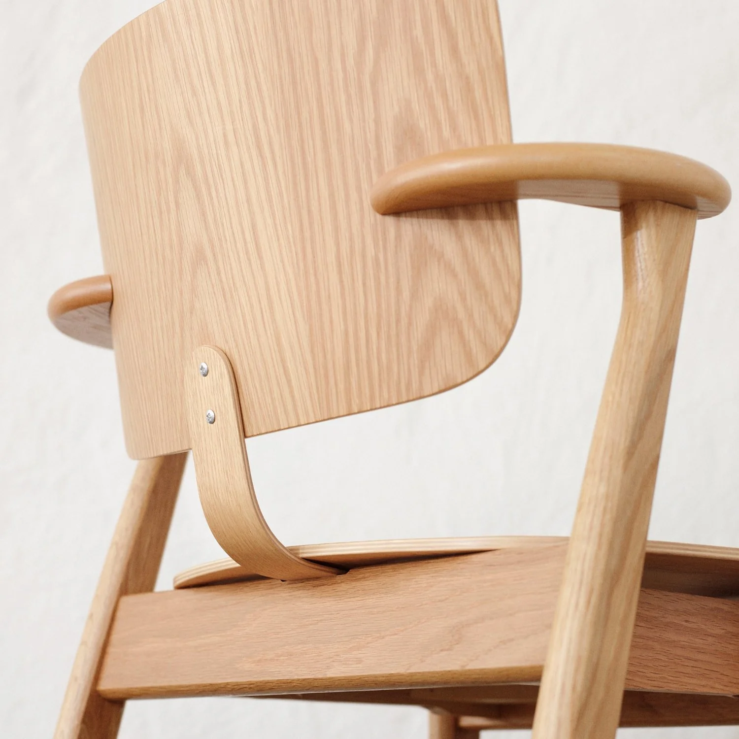 Domus-stolen er et mesterverk innen moderne møbeldesign. Ilmari Tapiovaara designet stolen i 1946 for studentboligen Domus Academica i Helsingfors. Domus-stolen er komfortabel nok til å sitte i over lengre perioder, og takket være de korte armlenene kan den trekkes tett inntil bordet for studier eller spising. Denne klassiske stolen har funnet en plass i hjem og offentlige rom over hele verden. Leveres montert, med filtglidere montert.