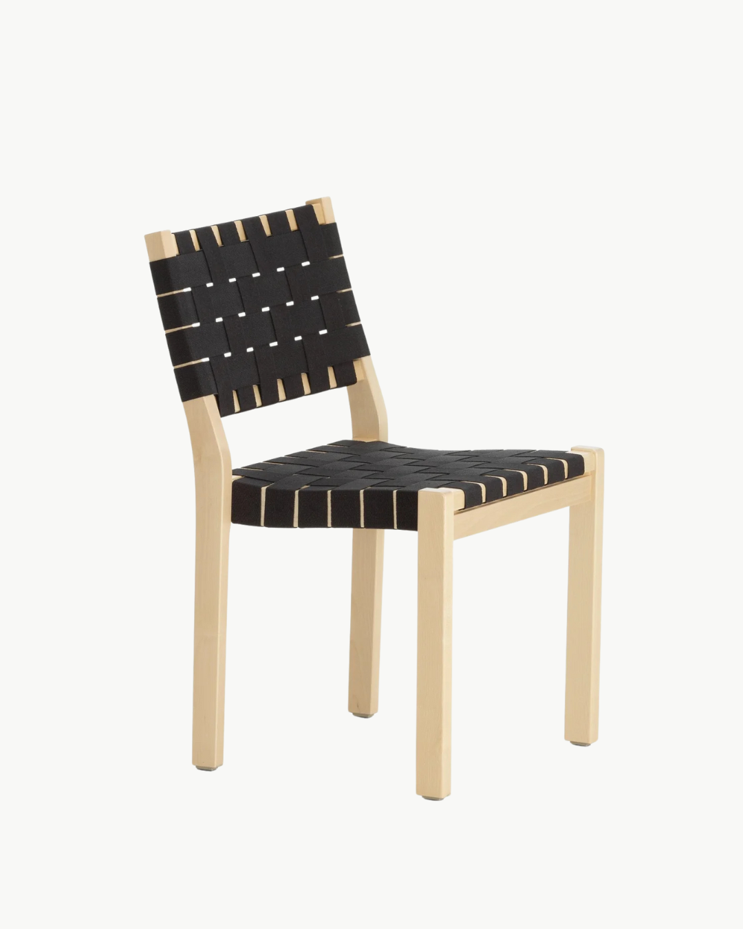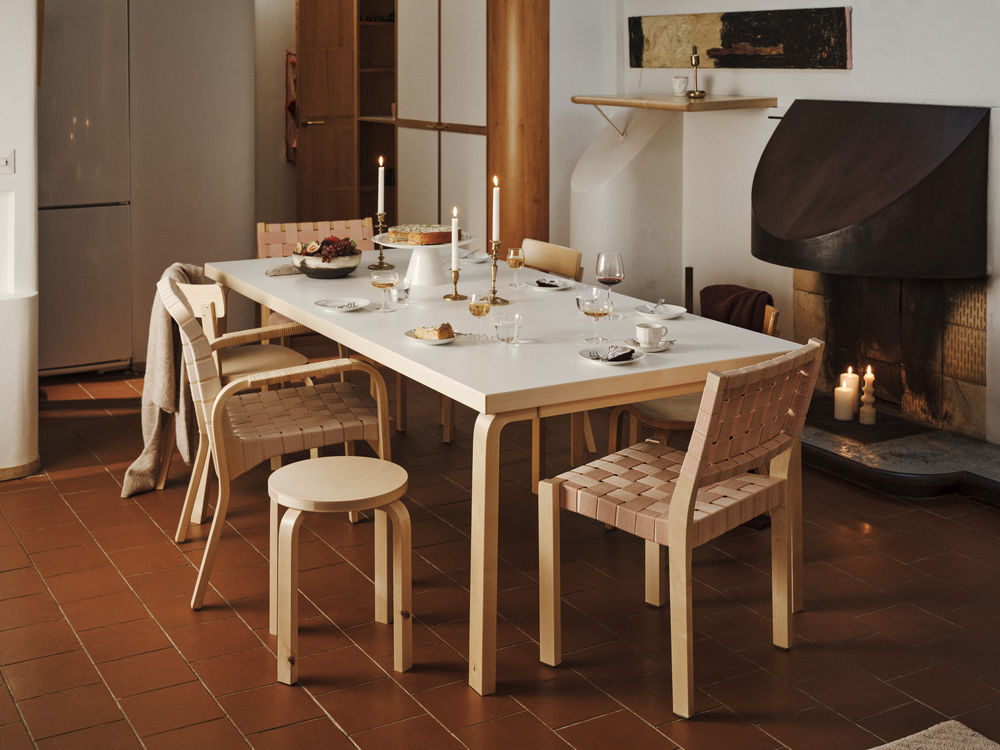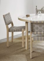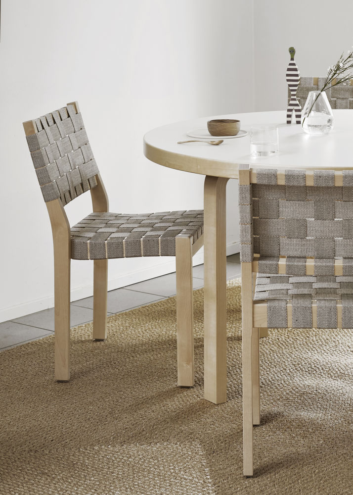 Stol 611, designet av Alvar Aalto i 1929, er en av hans tidligste møbeldesign og har vært i kontinuerlig produksjon siden. Stolen har en solid ramme i bjørk og sete og ryggstøtte som er sadelsydd med robust flettet linrem, som gir et lett og elegant uttrykk.
