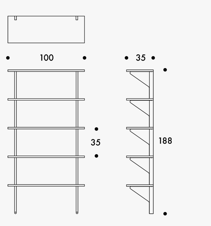 Praktisk hylle til alle tenkbare bruk, kan serie festes for å opprettholde dens lette å rene design, eller festes mere lekent ved å bruke flere hyller sammen horisontalt.