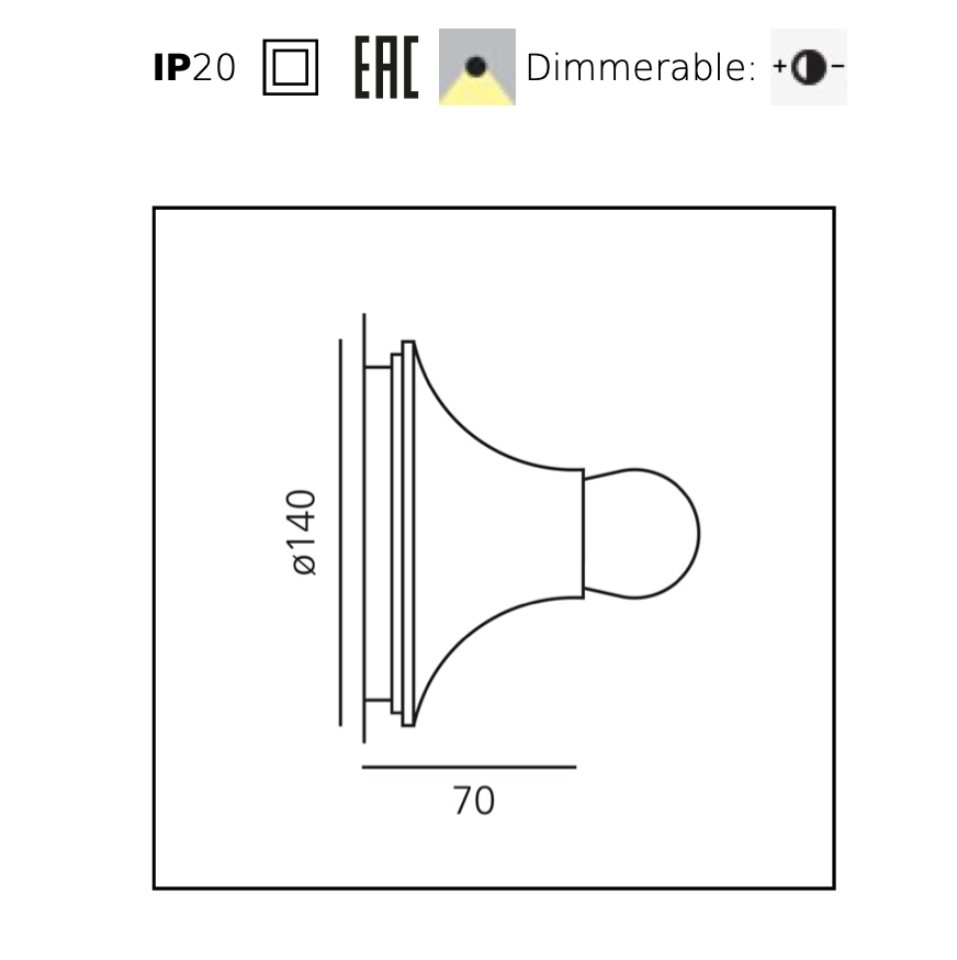 Materiale: Armaturhode: Kokillestøpt akryl, satinert. Beskyttelse: Laserskåret akryl satin. Veggboks: Presstøpt aluminium. Arm: Kokillestøpt aluminium.