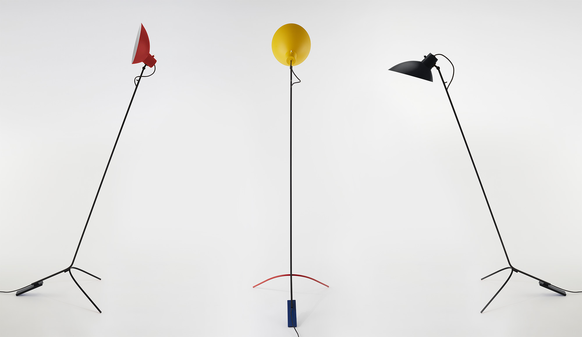 VV Cinquanta, designet av italiensk arkitekt Vittoriano Viganó i 1951, i sin tid som kunstdirektør for Arteluce, har en poserbar direkte lyskilde som kan svinge og vippe, fra direkte arbeidslys til oppoverbelysning.