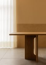 Androgyne Dining Table kombinerer naturlige materialer med skulpturelle former i en moderne, tidløs design. Bordet tar navnet sitt fra den balanserte kombinasjonen av maskuline og feminine uttrykk, og skaper et dristig og elegant midtpunkt i spisestuen.