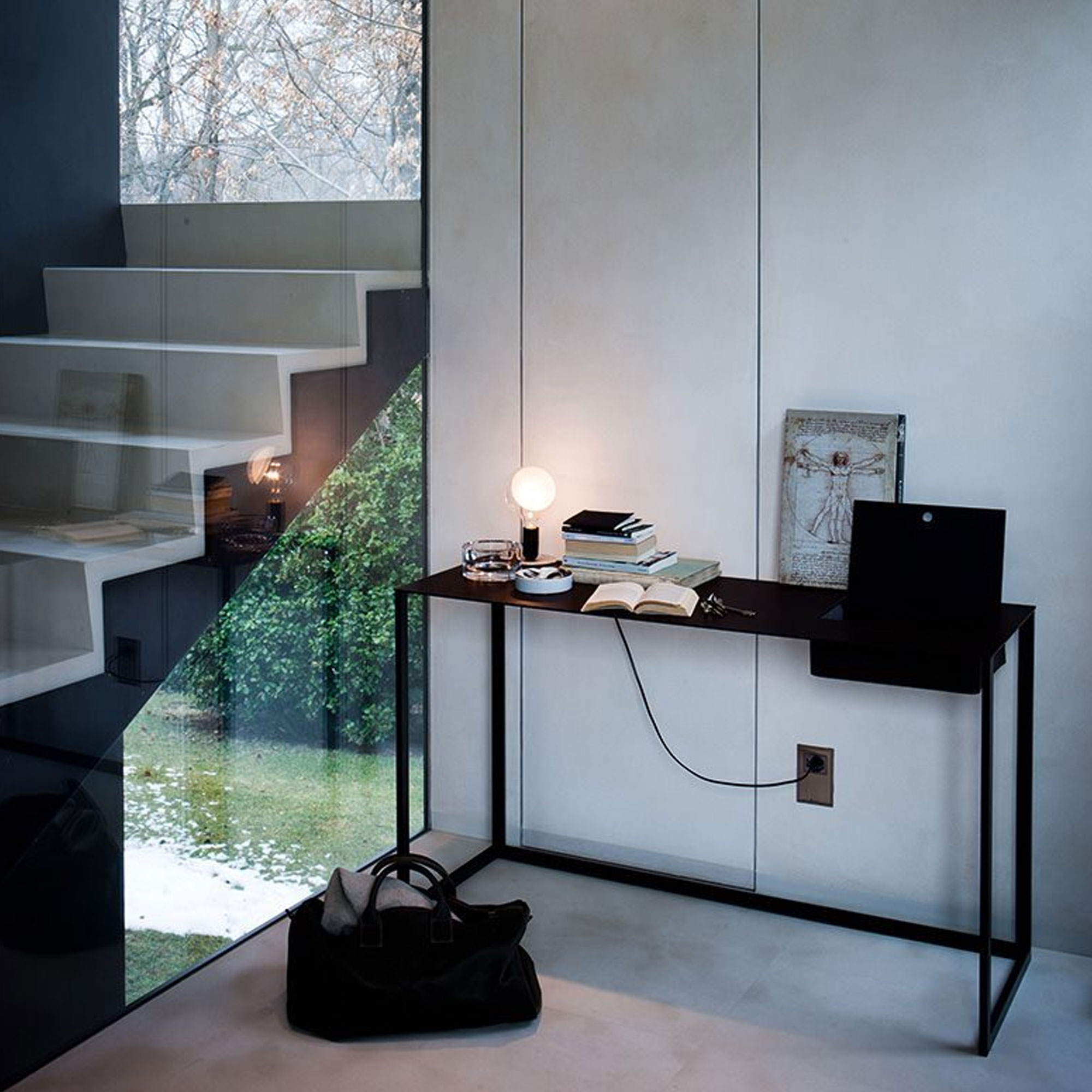 Uansett om arbeidsplassen din er på kontoret eller hjemme – med String System har vi løsningen som dekker alle dine behov. Dette oppsettet i én seksjon med tre hyller og et skrivebord er både enkelt og elegant til rommet der plassen er begrenset.