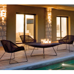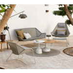 Den elegante lav innbydende lounge stolen er bygd opp over en klassisk ramme, og det er nettopp de bøyde ben på stolen som gir designet den unike letthet, eleganse og komfort. Serien omfatter en spise-, lounge- og salongbord. For sesongen 2010 har arkitekt-duoen har lagt en komfortabel highback sunchair med matchende fotskammel til området.