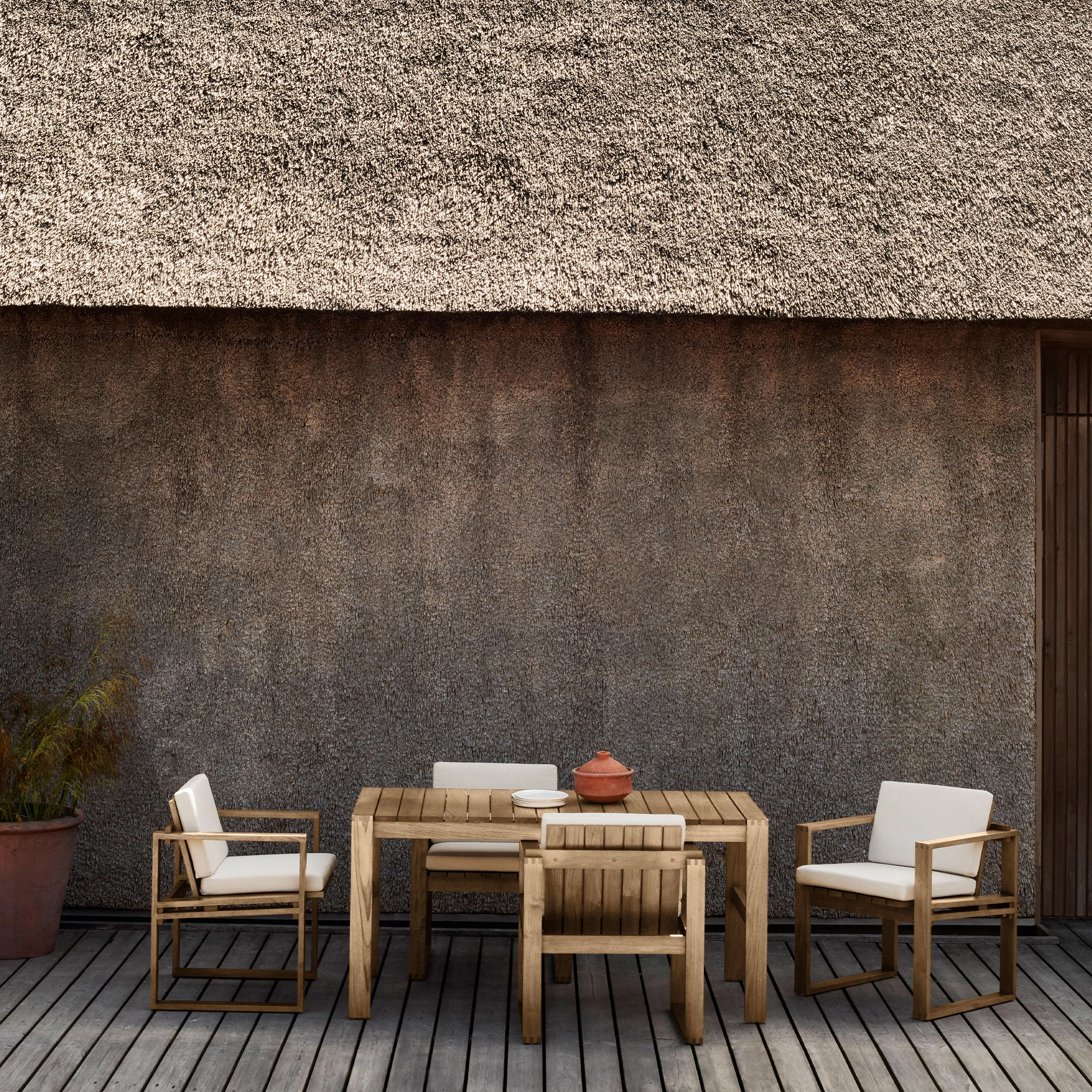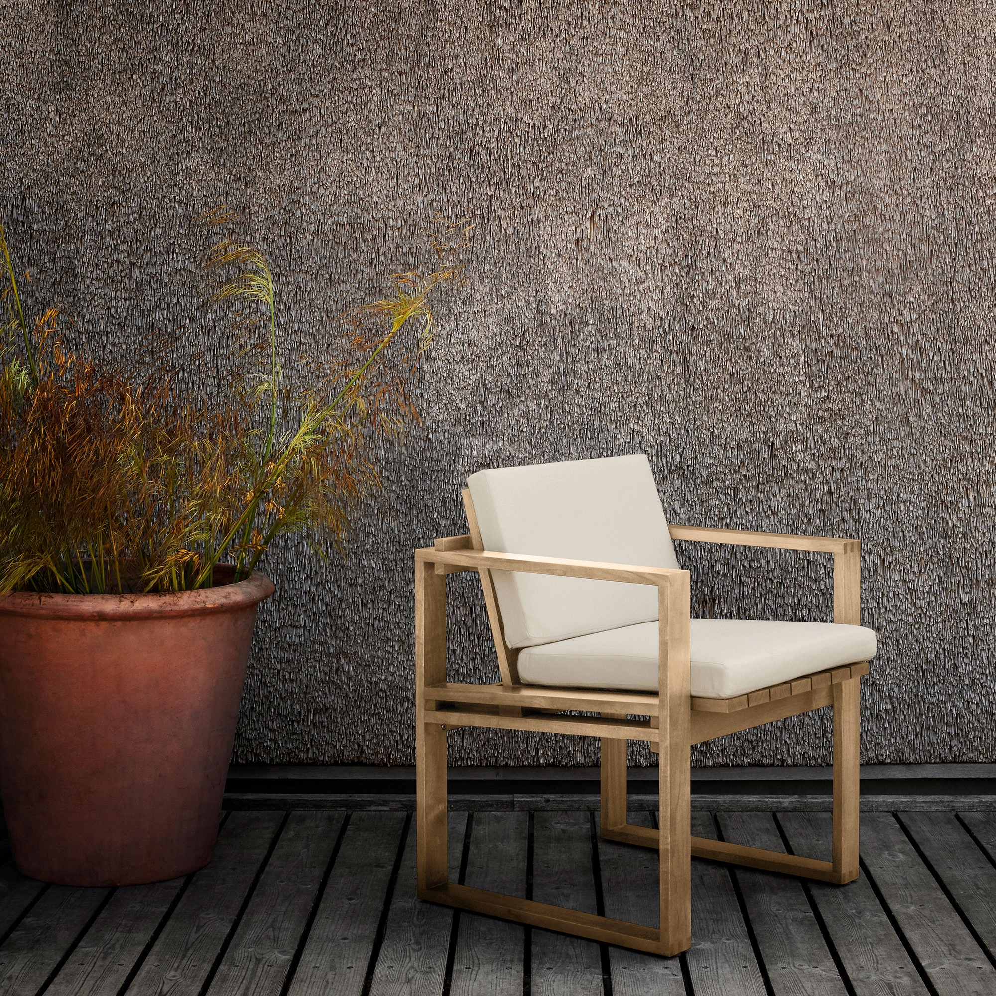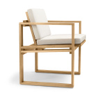Ryddig, presis og behagelig grafisk, ser Bodil Kjær BK10 spisestue så godt innendørs som det gjør utenfor, noe som akkurat den danske arkitekten har til hensikt. Kubistinspirert stol er laget av solid teak og er designet for å patinere vakkert over tid og har et fint, lineært utseende til tross for den robuste konstruksjonen.