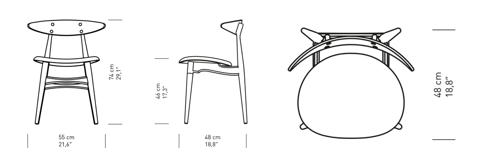 CH33P uttrykker ren enkelhet, med organiske former. Den elegante stolen er forsiktig designet for å støtte bærende ledd med klare referanser til de rene linjene på 50- og 60-tallet. Den vakre trekonstruksjonen har en varm, menneskelig følelse, noe som gjør CH33P til en ideell passform for moderne interiør.