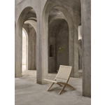 Denne sammenleggbare lenestolen er ideell som en ekstra eller permanent armatur. Den lette og sammenleggbare rammen kan enkelt henges på veggen eller plasseres på et gulvbord for praktisk oppbevaring. I mellomtiden har stolen all elegansen til en skulptur med sine naturlige materialer, ren bomullsbelegg og tydelig håndverk. Kort sagt, det uttrykker vakkert begrepet kompleks enkelhet.