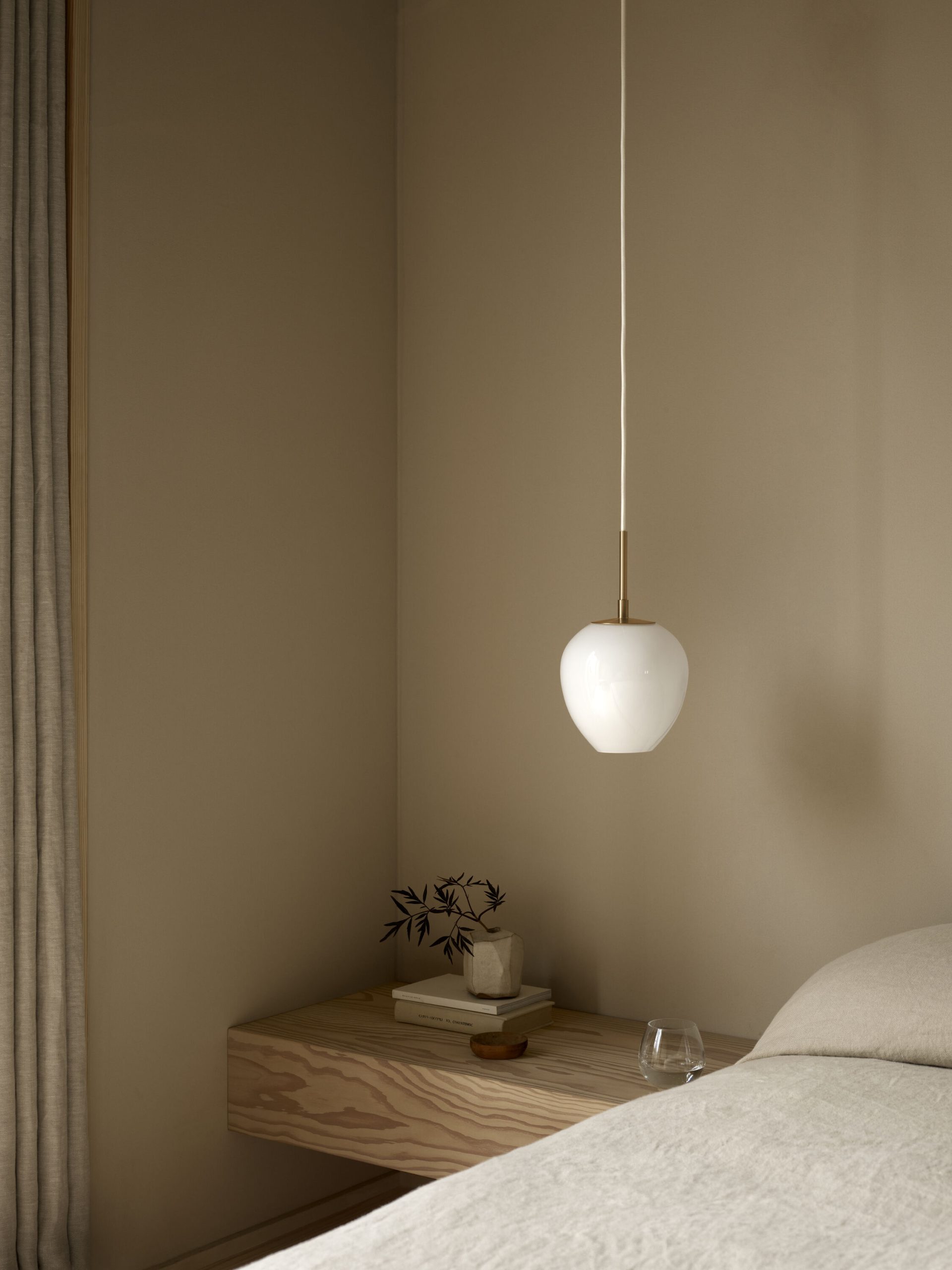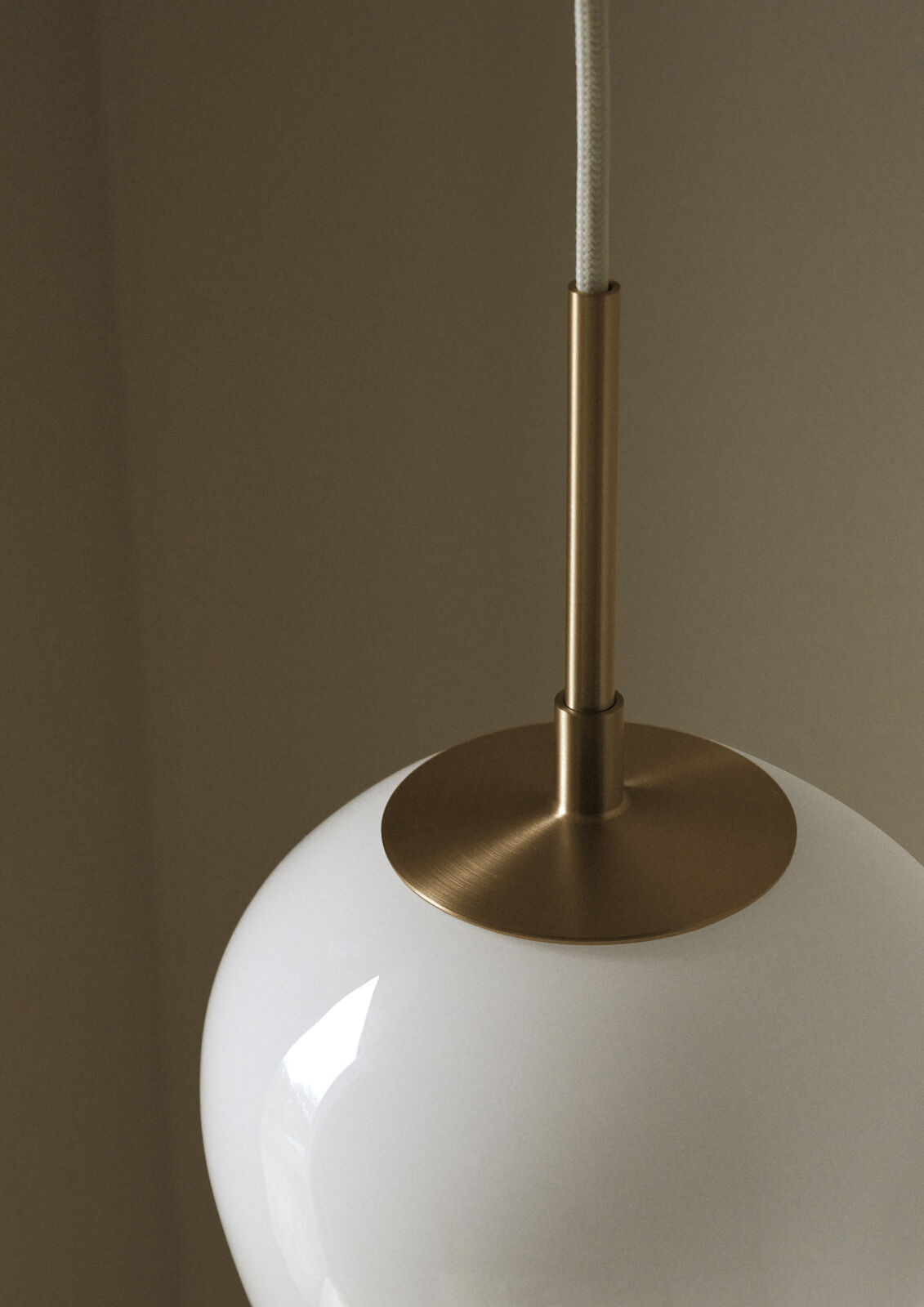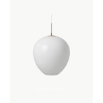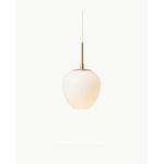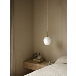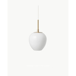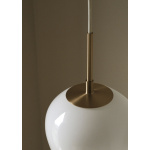 Den solide opphenget i massivt messing er presist utformet og smelter sømløst sammen med glasskjermen for å skape en harmonisk og organisk helhet.