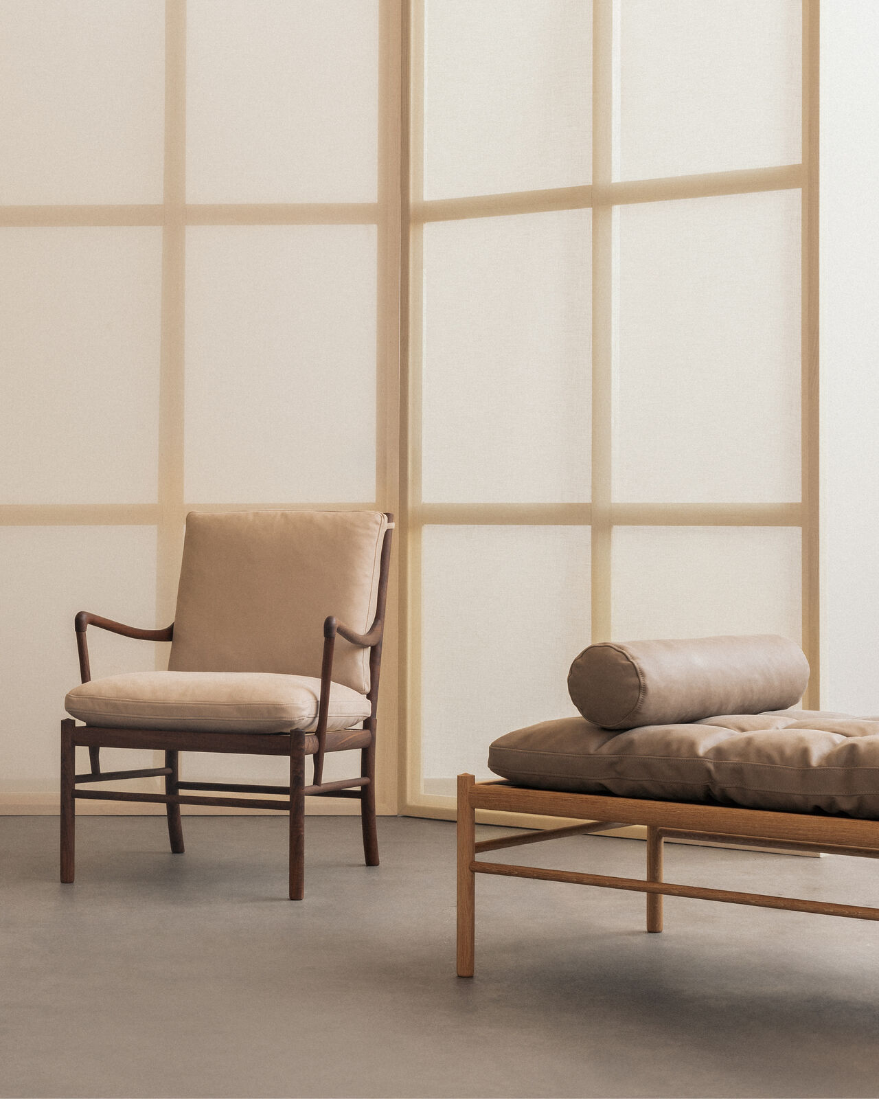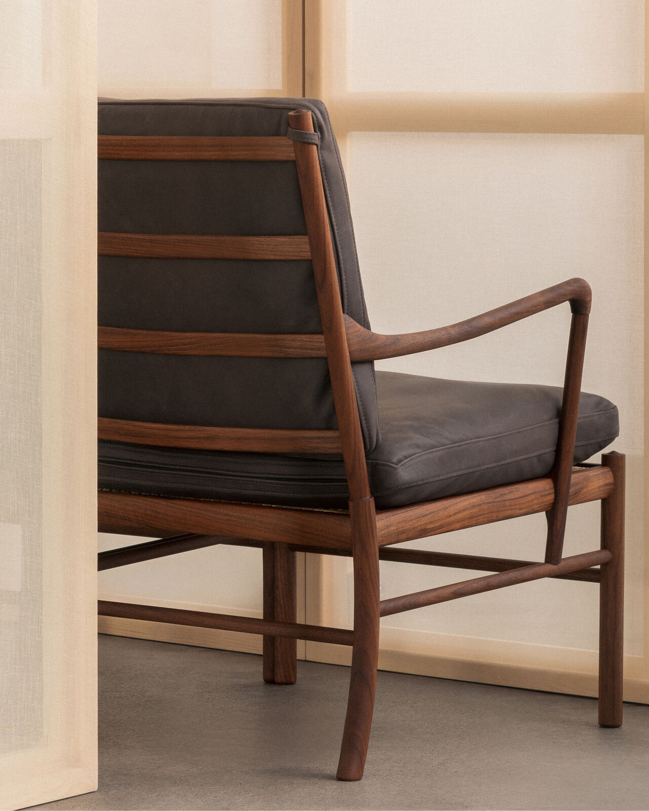 Femten år senere utviklet Wanscher den matchende Colonial Sofa og Colonial Coffee Table, som sammen utgjør den eksklusive Colonial-serien. Colonial Chair kan også kombineres med den matchende OW149F Colonial Footstool for ekstra komfort og avslapning.